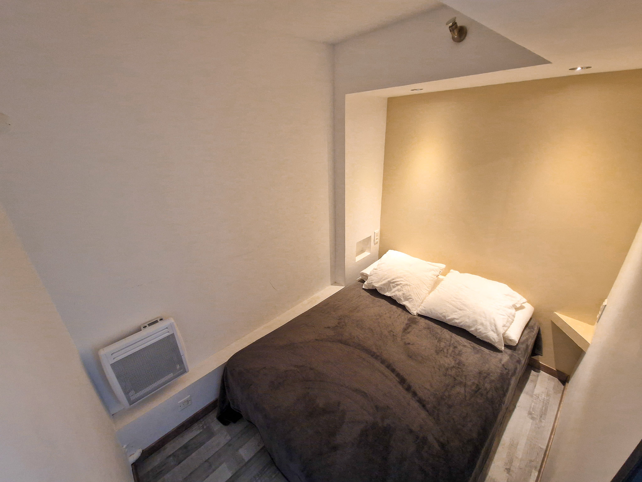 Ce charmant meublé situé au 1er étage de notre résidence comprend une chambre séparée avec un lit confortable, un séjour accueillant avec un canapé convertible, une kitchenette moderne