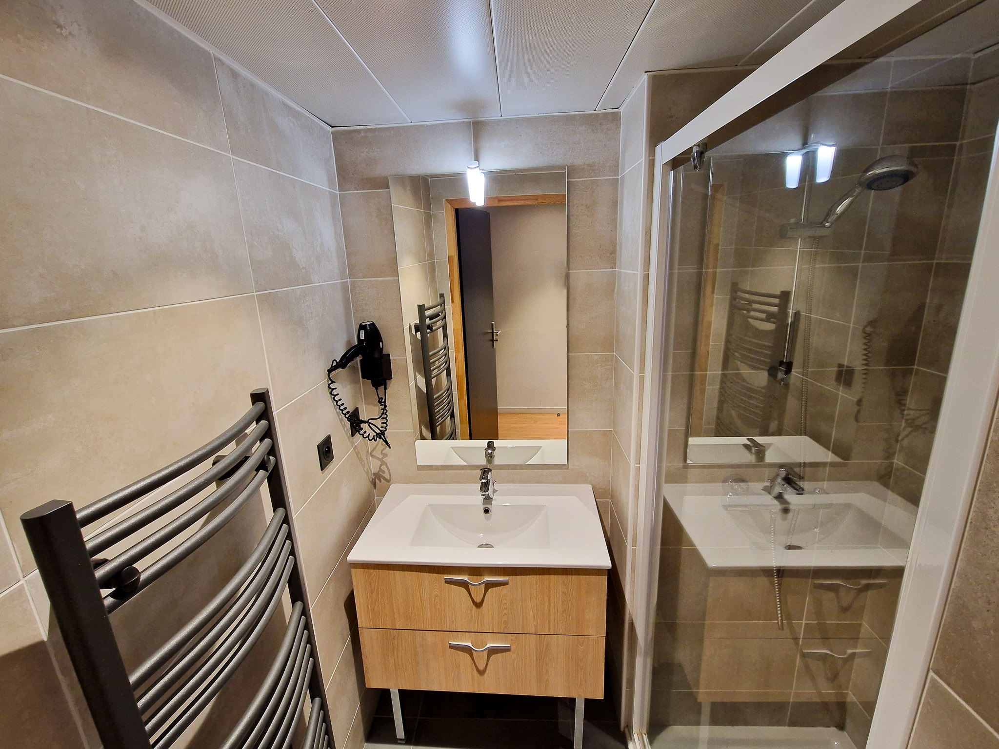 La salle de bains comprend une douche, avec des toilettes séparées pour plus de commodité.