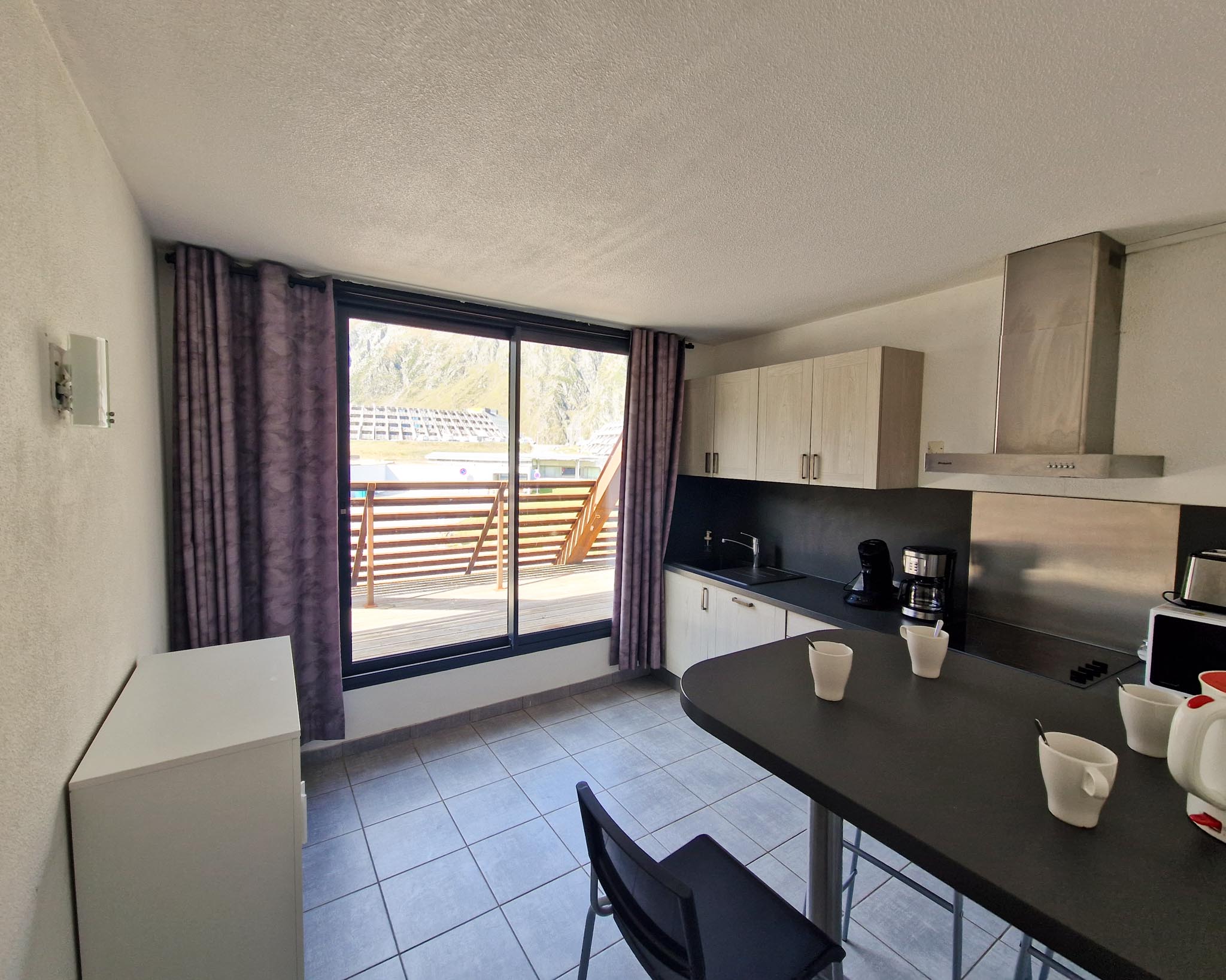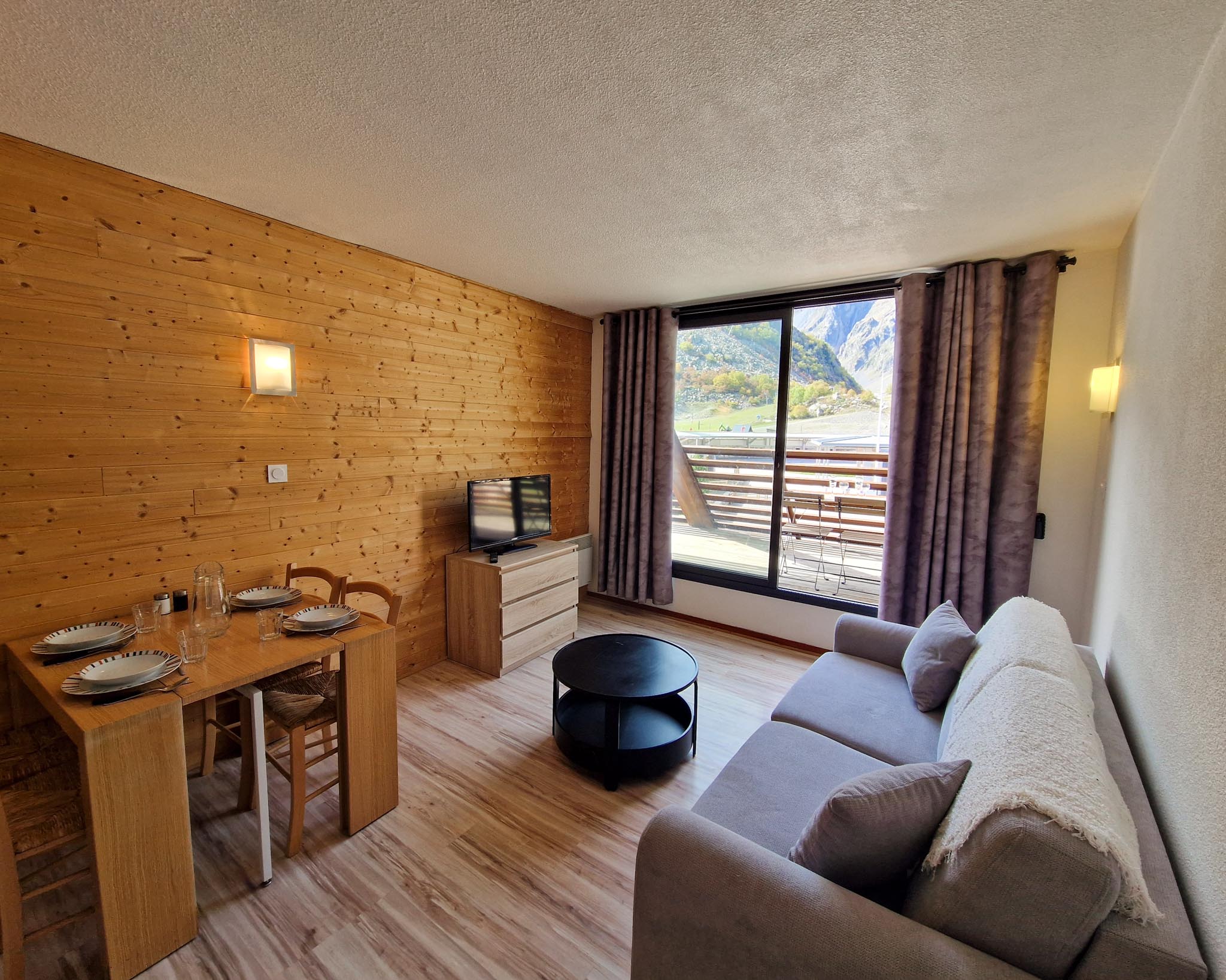 Le séjour est chaleureux avec un canapé-lit 2 places, une télévision et un accès au balcon exposé ouest, offrant une vue imprenable sur les pistes et la station. La salle de bain est équipée d’une baignoire pour des moments de détente, et les WC so
