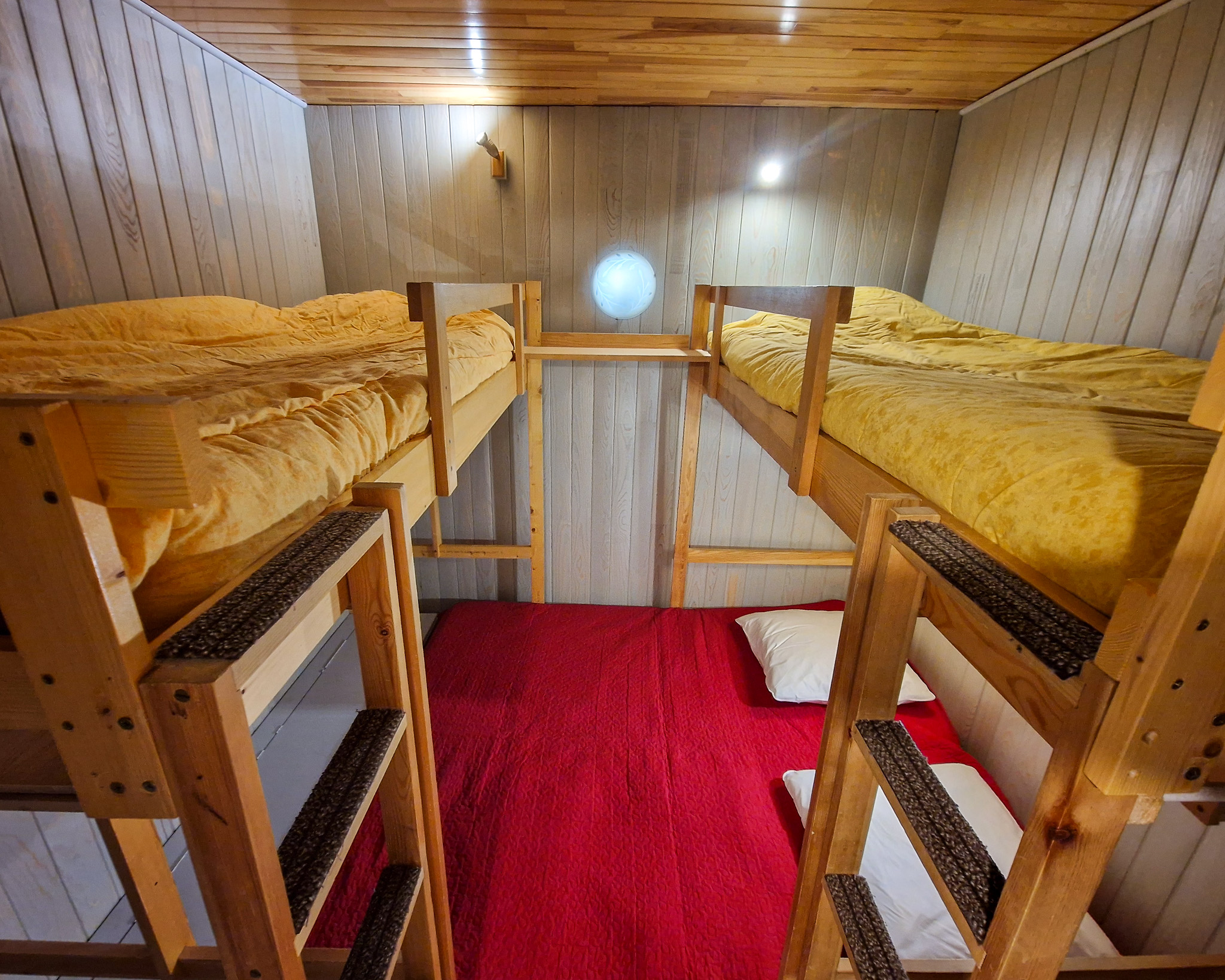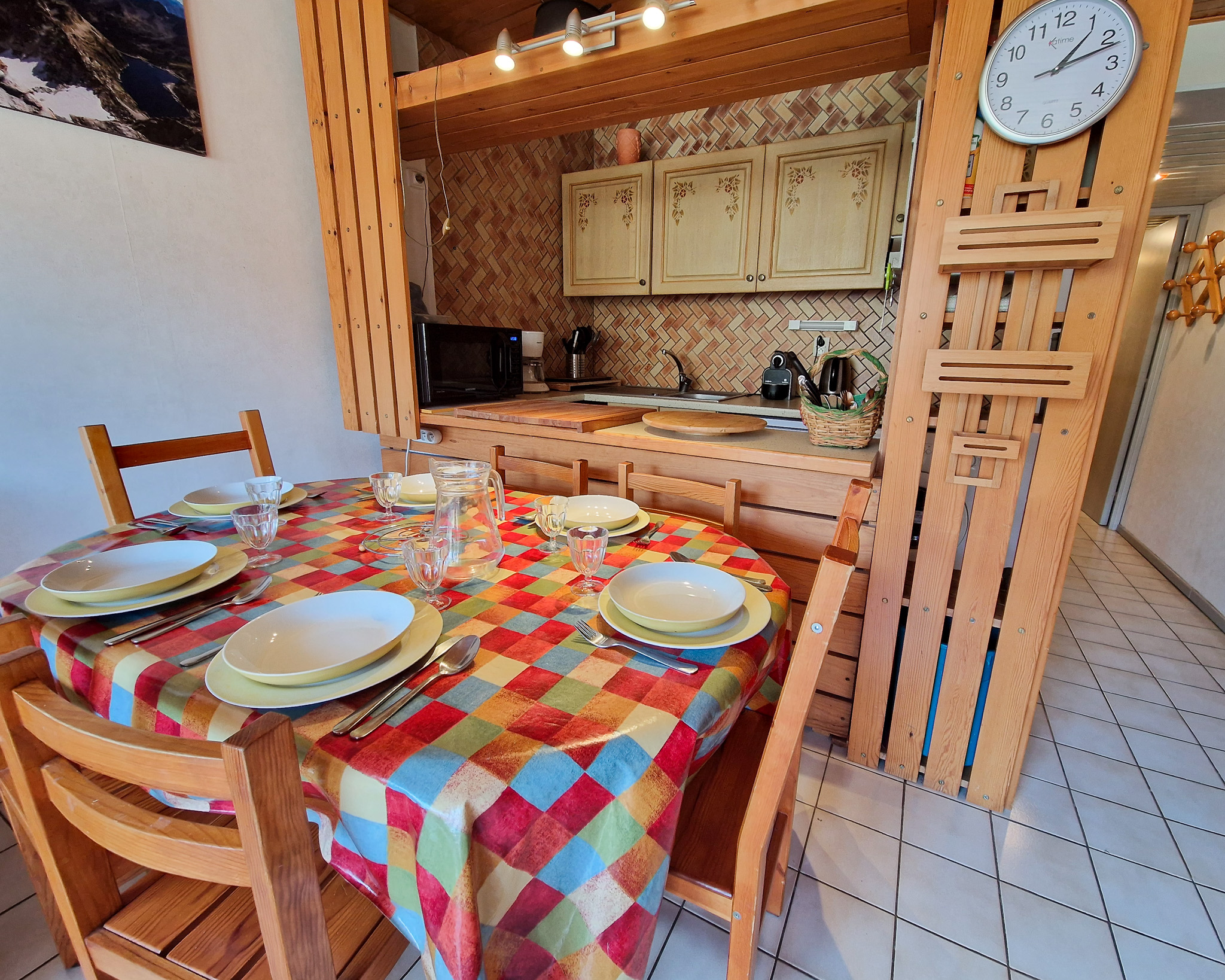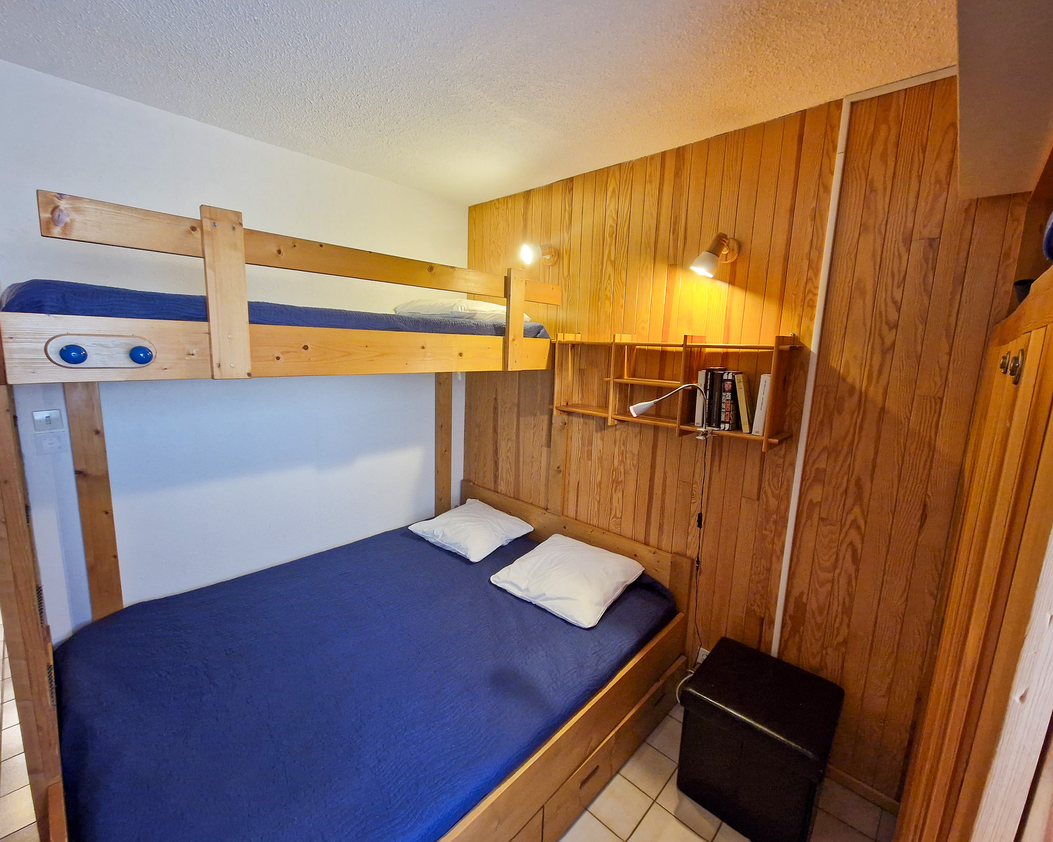 Profitez d’un séjour lumineux avec balcon plein sud et cuisine ouverte équipée, idéale pour partager des moments conviviaux. L’espace nuit se compose d’une chambre  (lit 160 cm + lit 90 cm) et d’un coin cabine optimisé (lit 160 cm + 2 lits superposés 80 cm).